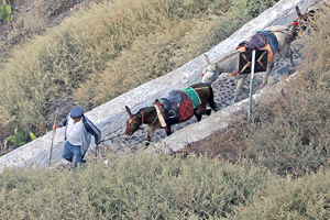Can't get enough of the walking? Climb up the 588 steps from the Old Port to Fira — make it as leisurely as you like — and enjoy the pretty sights, including the donkeys, along the way. And once in Fira, why not explore this capital city as well? Despite, or perhaps because of its small size, the city packs a wallop when it comes to breathtaking vistas, beautiful churches, and picturesque street scenes replete with cobblestone pavements and quaint nooks, shophouses, and cafes.